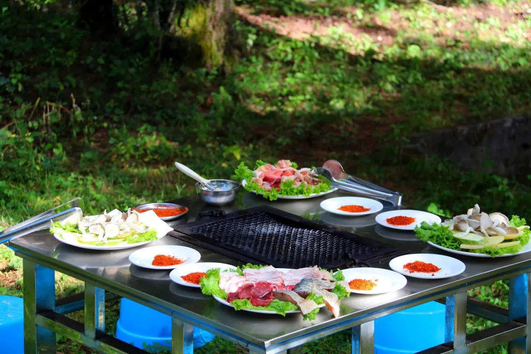 户外烧烤场地位于雪山丛林秘境,食材源于自有生态农场,绿色健康、有机可口……是夏日露营野餐好去处。此外,还有地道土鸡火塘、纳西特色炒菜等令人大快朵颐的美食。