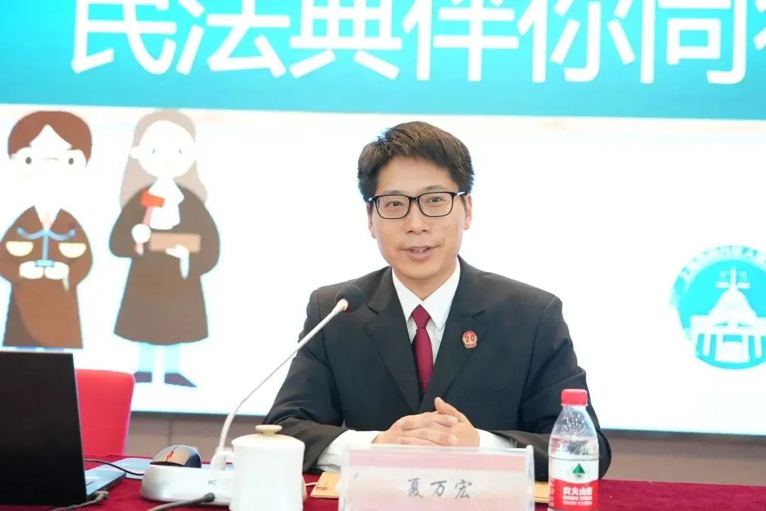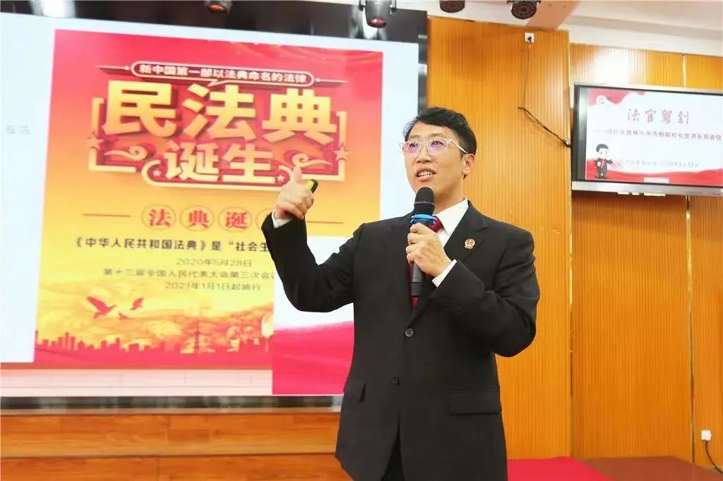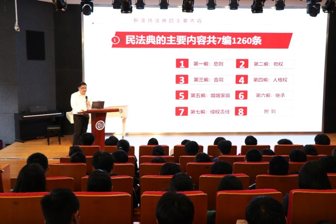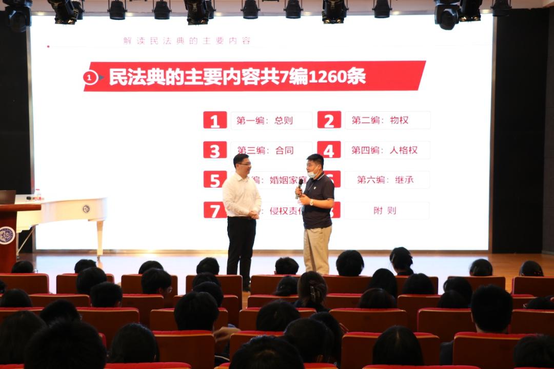 在协和双语教科学校的课堂上,面对高中生,刑事审判庭副庭长周波结合自身工作实际,用详实的资料,生动的案例,通过讲解《民法典》的权利保障、构成部分、编纂意义、宗旨和意义等内容,对《民法典》进行了全面的解读。