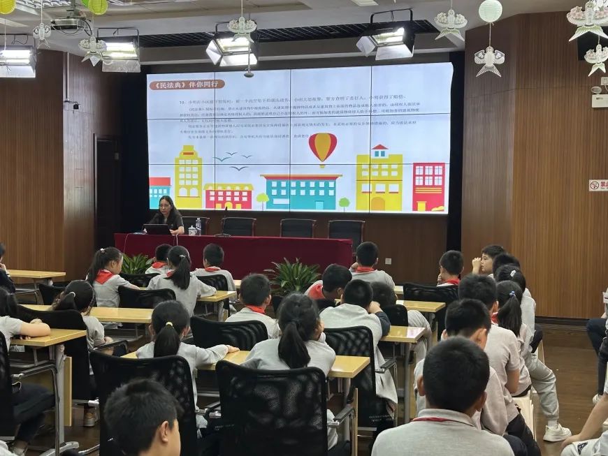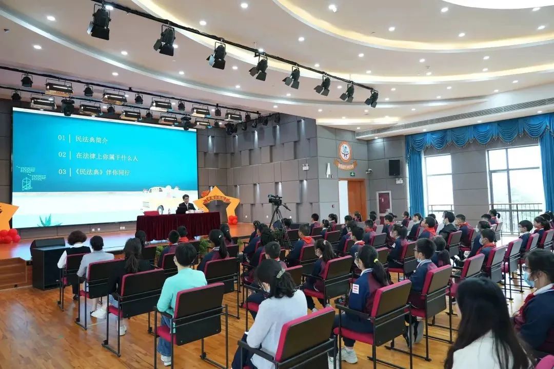 <民法典> 有“典”不一样》的主题讲座。当小学生遇到《民法典》,有哪“典”不一样呢?民法典>讲座中,他以“小明的一天”故事情节为主线,紧贴小学生的实际生活列举了10多个生动鲜活的例子,以通俗易懂的语言辅之以妙趣横生的动画,让同学们了解了《民法典》如何影响小学生生活的方方面面,从而教导孩子们学会运用民法典维护自身的权益。