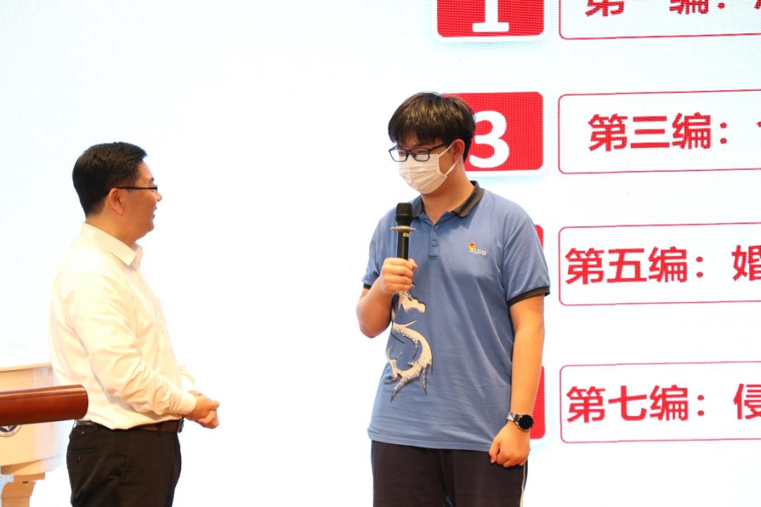 最后,陈淋清法官还给现场的“最具法律人潜力”的三位同学赠送了《民法典》,鼓励同学们好好学习,天天向上,在真善美的世界里快乐成长。