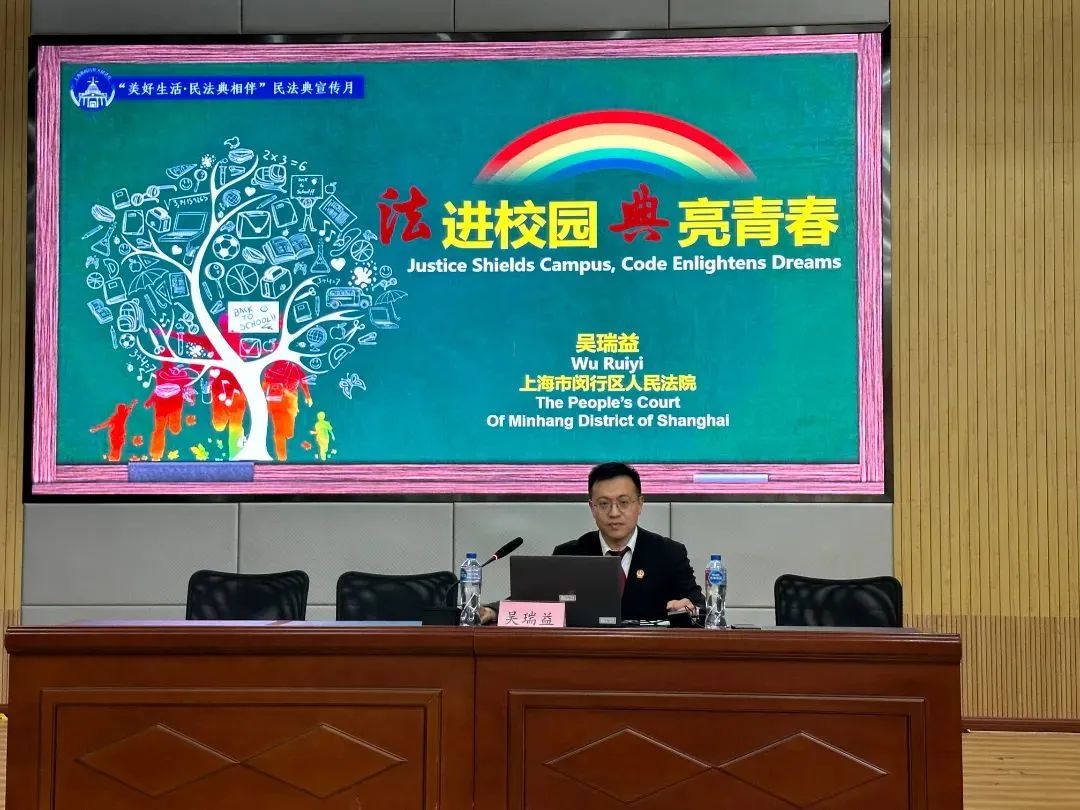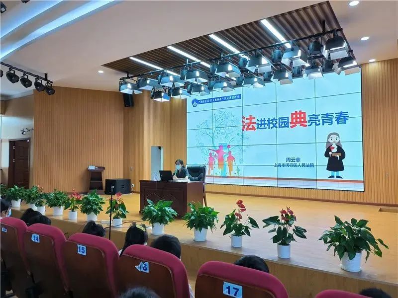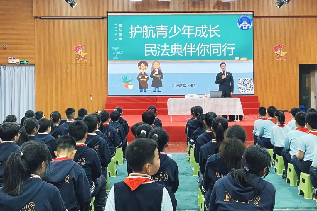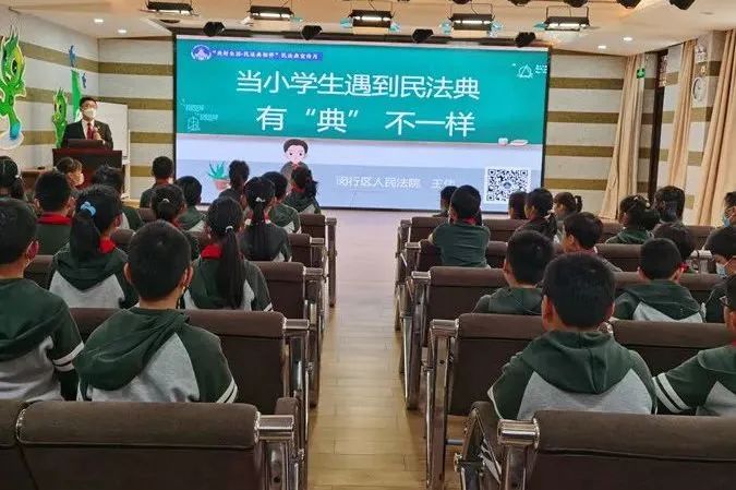 为贯彻落实习近平总书记“把民法典纳入国民教育体系,加强对青少年民法典教育”的指示,为更好的让孩子们读懂这部“社会生活的百科全书”,值此《民法典》颁布三周年之际,闵行区人民法院18名中小学法治副校长在5月份,分别走进闵行区20所中小学校园开展“法进校园,‘典’亮青春”民法典宣传活动,努力让《民法典》走进校园、走进课堂、走进未成年人心中,帮助同学们快乐学法、严格守法,争做文明好少年。