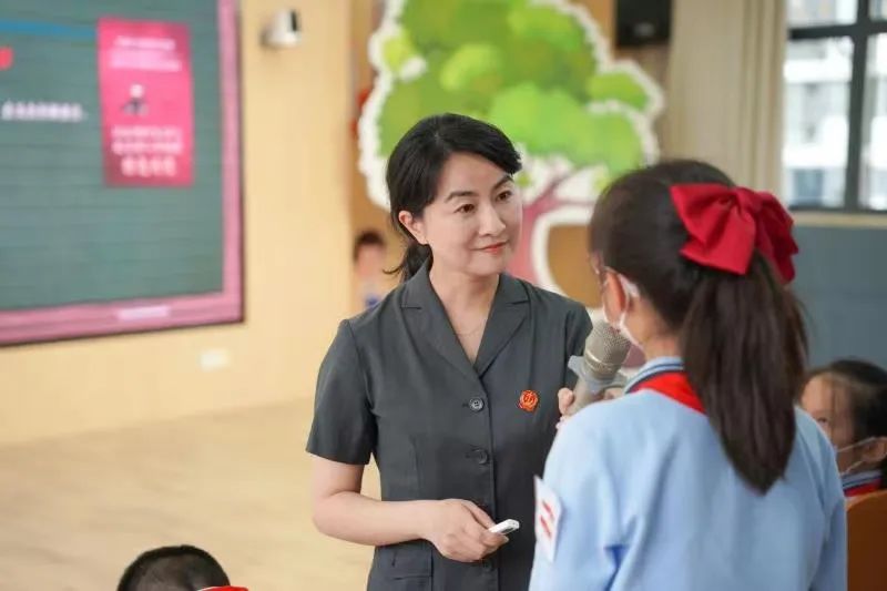 结合生活中的鲜活的事例,通过以案释法、互动问答的形式,施蕾法官向师生们重点讲解了《民法典》中与未成年人相关的典型案例,比如:网络打赏能否返还;家长是否能够偷看孩子日记、信件;孩子是否享有财产权等,进一步引导孩子们读懂《民法典》是如何保护未成年人。