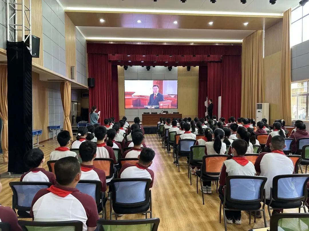 最后章国栋法官送给同学们两句话:学法,是人生的必修课;用法,是人生的守护符。希望同学们能够知法、懂法、守法,在与法同行中,健康茁壮成长!