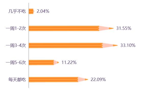 报告显示,超六成受访家长表示孩子每周吃零食次数在三次及以上,其中22.09%的受访家长表示孩子每天都吃零食,仅有2%的受访家长表示孩子几乎不吃零食。