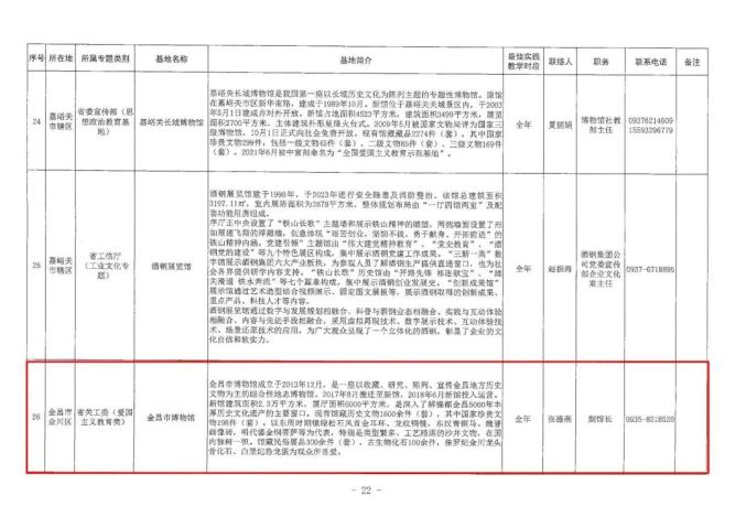 金昌旅游ID:gsjcly 金昌旅游期待与您互动 ★ 游记、图片、游记 可投至ZJHCLMJC@163.com原标题:《喜报:金昌市博物馆荣获全省首批“大思政课”实践教学基地称号》