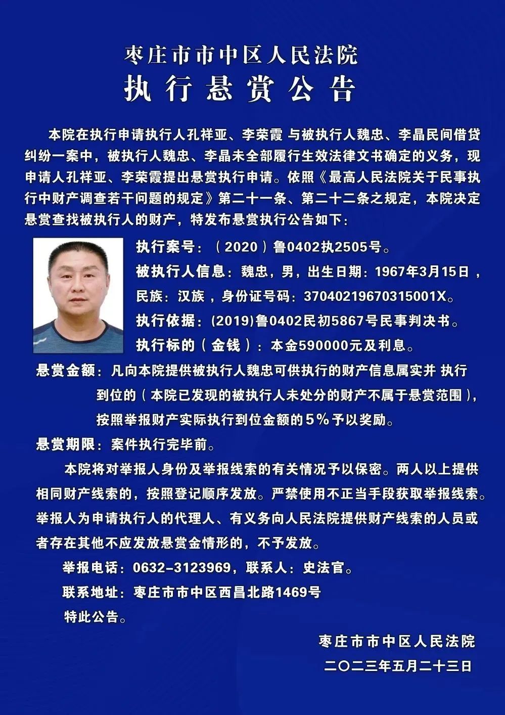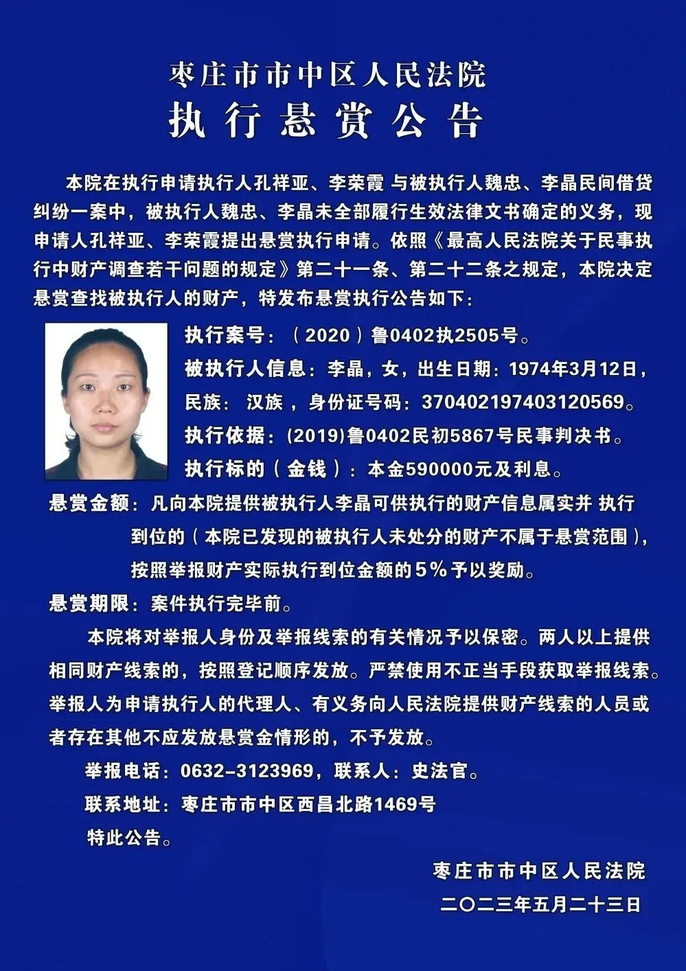 原标题:《枣庄市市中区人民法院发布执行悬赏公告》