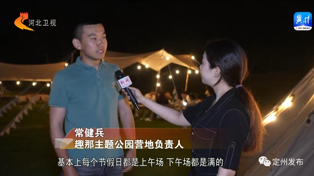 趣那主题公园营地负责人 常健兵:露营帐篷天幕有50多顶,基本上每个节假日都是上午场,下午场都是满的。客流量最高单日有五六千人,营业额单日有三四万。