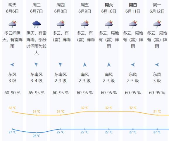 ⭐6日:多云间阴天,有雷阵雨,局部大雨;