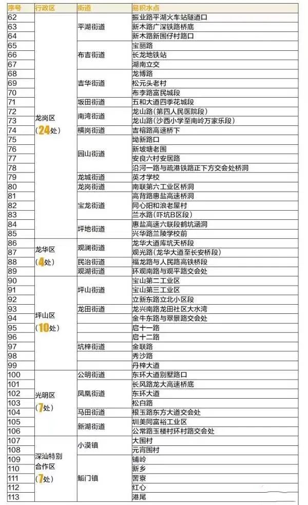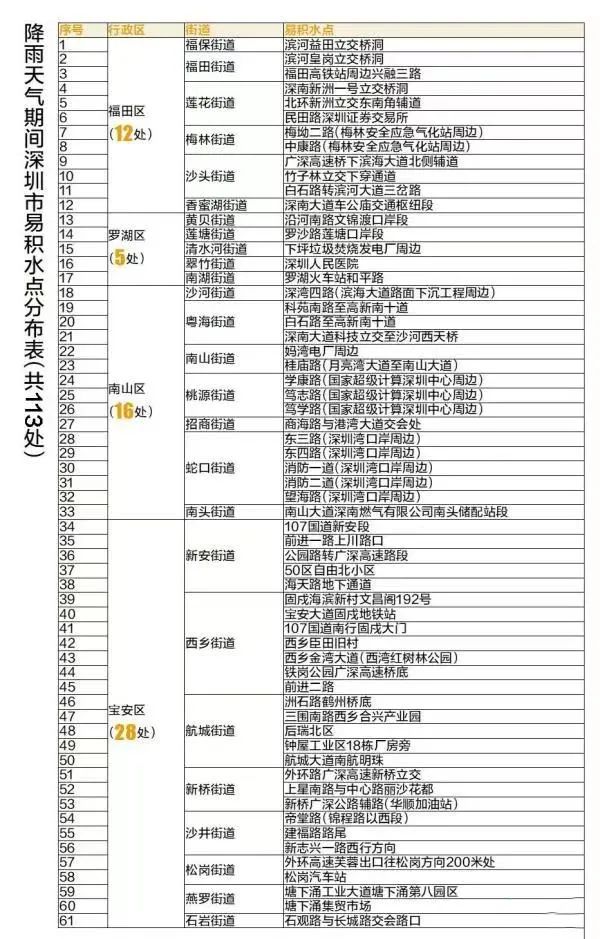 降雨天气期间全市易积水点分布