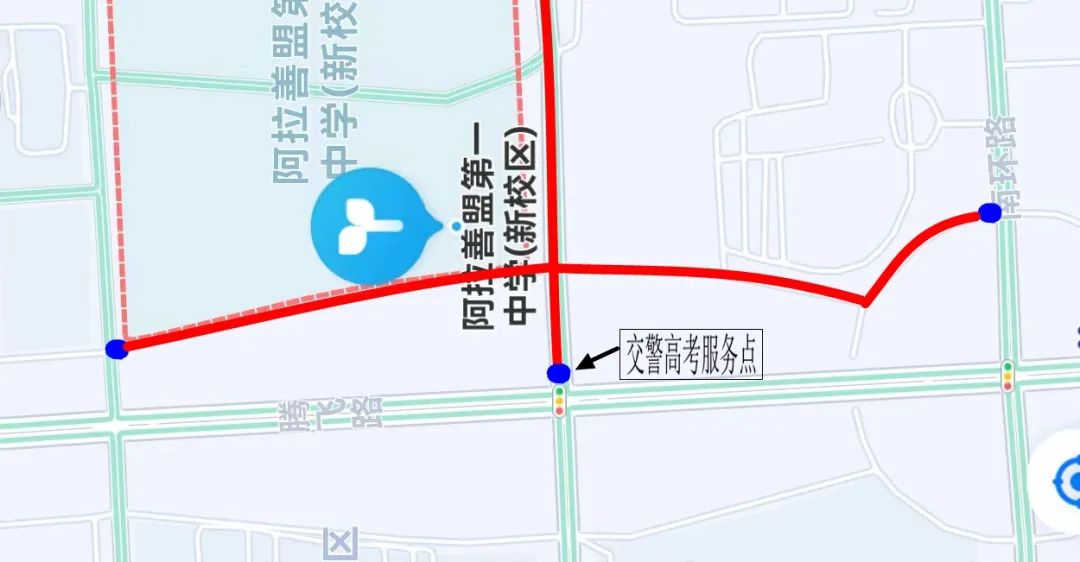 民族东路阿拉善盟第一中学(新校区)门前东、西路口执勤点为高考服务点,安排民辅警接受高考考生、家长求助,并积极提供帮助。
