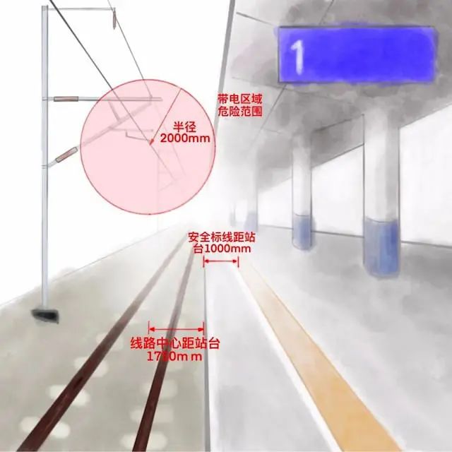 据了解,我国高铁站内带电部分,距离地面都是超过5米的,那么也就是说,即便是一个2米的超高的大汉在站台等车,他举着一把1米长的雨伞,此刻在接触网距离地面5.5米的候车站台等车,与带电部分的距离是超过2米,也不会有什么安全隐患。