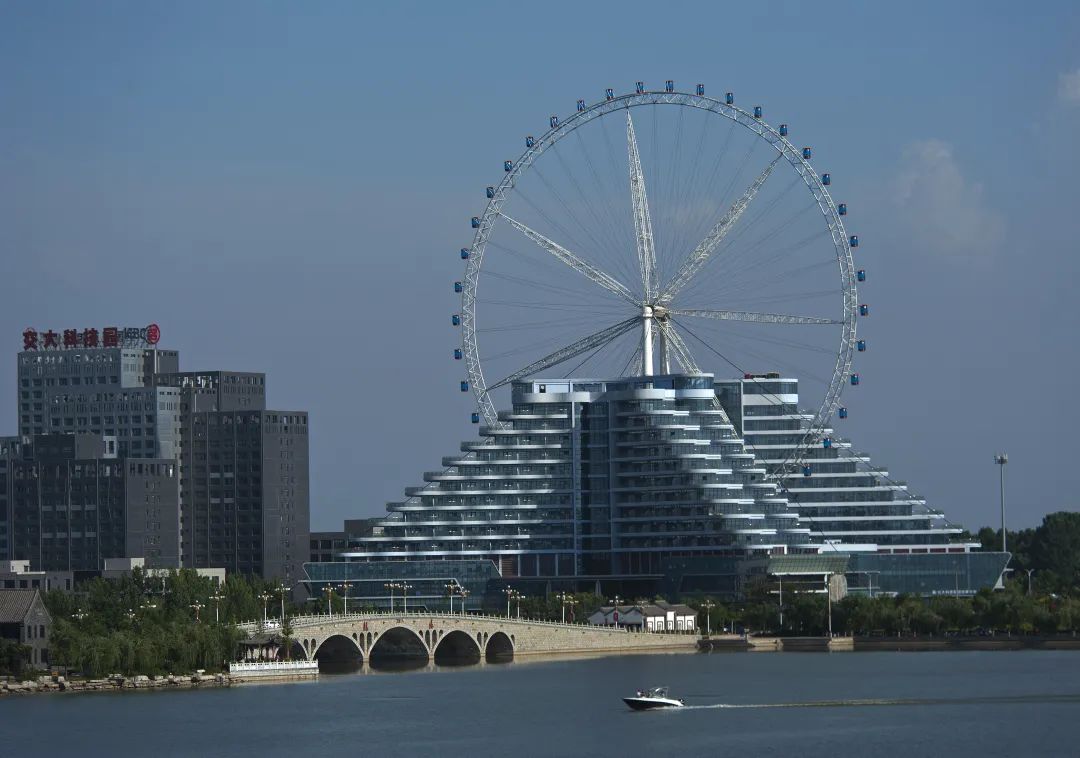 其中左塔高105.1米,右塔高120.1米,双塔扭转上升,远远地望过来,高空中不断旋转的明珠就好像聊城蒸蒸日上的未来一样,总是让人充满着期待。