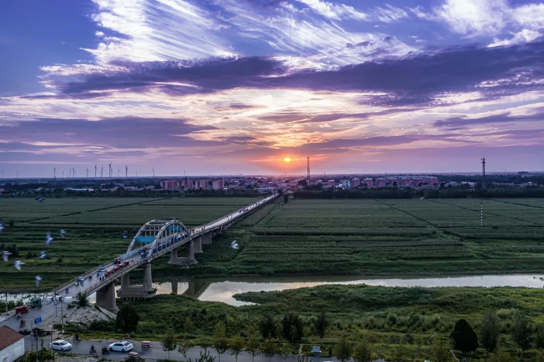 因为横跨着湖河,视野开阔,桥梁变成了聊城最适合拍摄日升日落的地方了,在这里总能捕捉到日升日落间不经意的温柔。