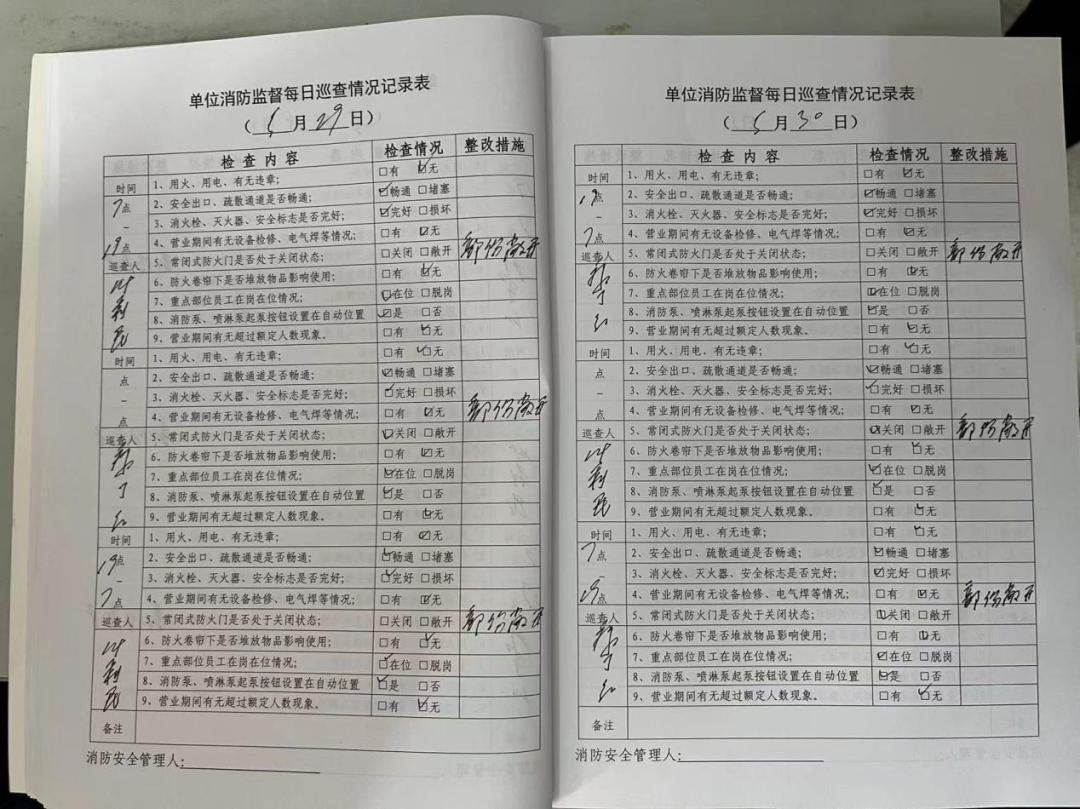 消防巡查记录缺少消防安全管理人签字