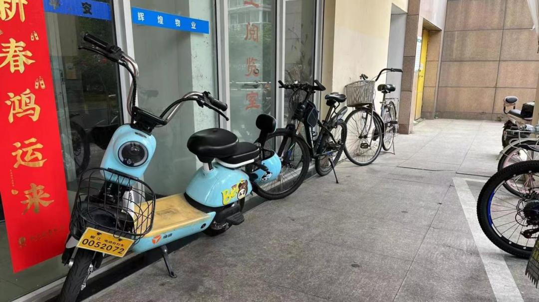 门厅处电瓶车、自行车乱停放
