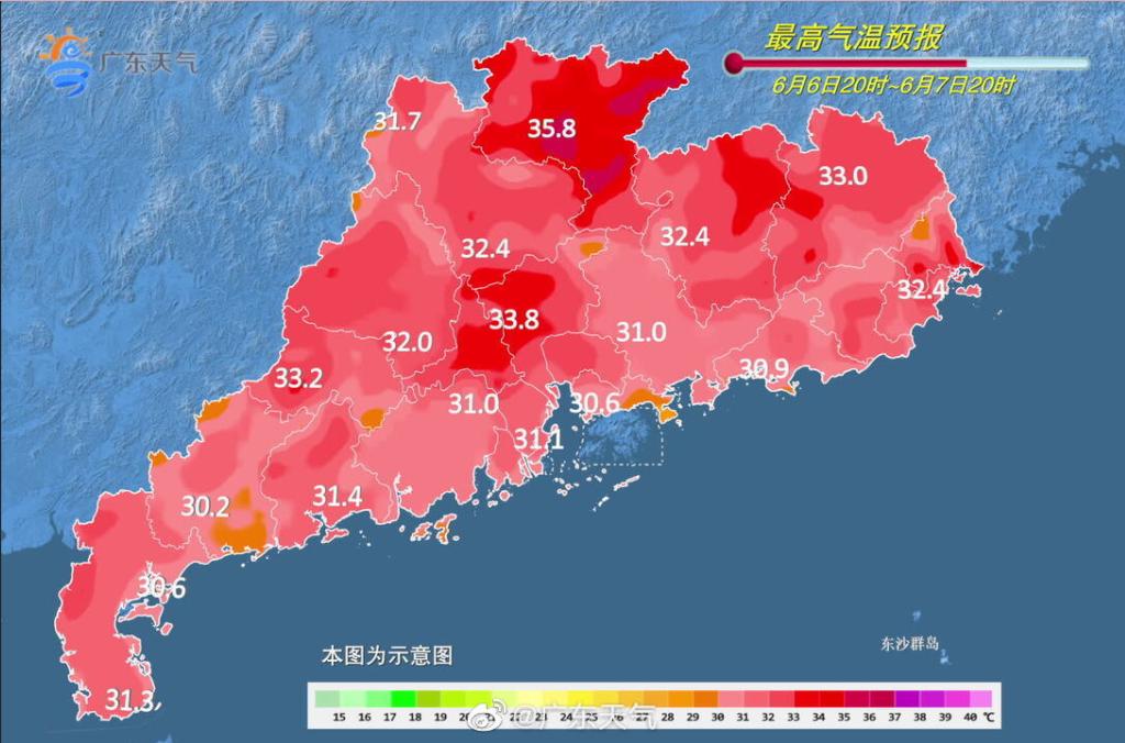 8日,西部市县有中雷雨局部暴雨,其余大部分市县有(雷)阵雨局部大雨。最高气温:粤西和沿海市县31℃~33℃,其余大部分市县34℃~36℃。