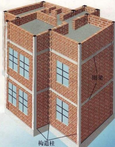 构造柱、圈梁形成对砌体的约束,在地震时能保持墙体的完整性。砖混结构是采用砖墙和钢筋混凝土梁板等构件一起来承重的混合结构体系,这一结构的住宅绝大部分的砌块墙体都属于承重墙。砖混结构中承重墙最多。承重墙及混凝土梁、柱均不能拆改。