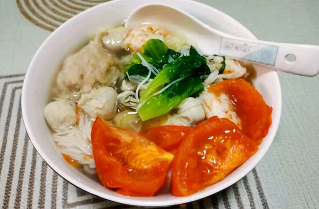 ● 水水妈妈的“柿柿如意”水妈眼里,这不是碗普通的面线,它是“柿柿如意”面线,还是碗结合了网上最先进科学健体原则的“柿柿如意”:脂肪来源于猪肉和肉丸,两者相辅相成,带来更丰富的鲜味氨基酸增加适口性;高三用脑多,蛋白质也不能少,靠海吃海,新鲜的海蛎和虾不仅是纯蛋白,还能继续叠加鲜味元素——当然虾还得是去好了壳的,可以节省孩子宝贵的清晨几分钟;生菜和西红柿则是维生素的来源,也是提升早餐颜值的关键一环。这一碗下肚,当天上学如意,100天后高考也会如意。