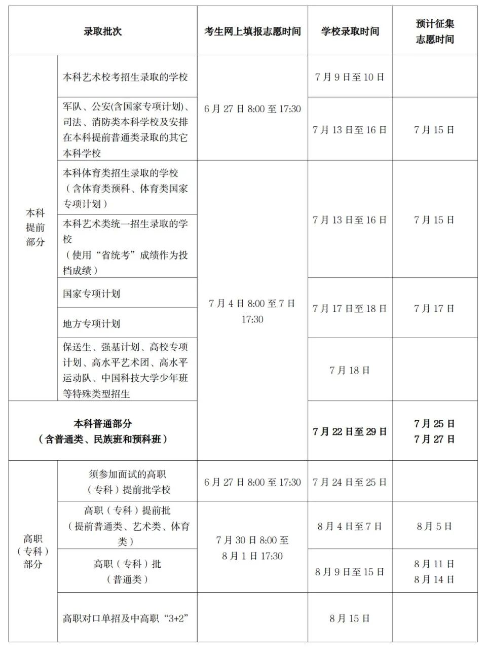 填报志愿和录取时间