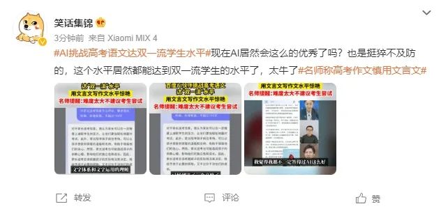 原标题:《我让7个AI写了今年的高考作文,还找语文老师打了分。》