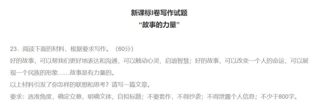 使用的是这次全国新高考 I 卷,题目是 “ 故事的力量 ” 。