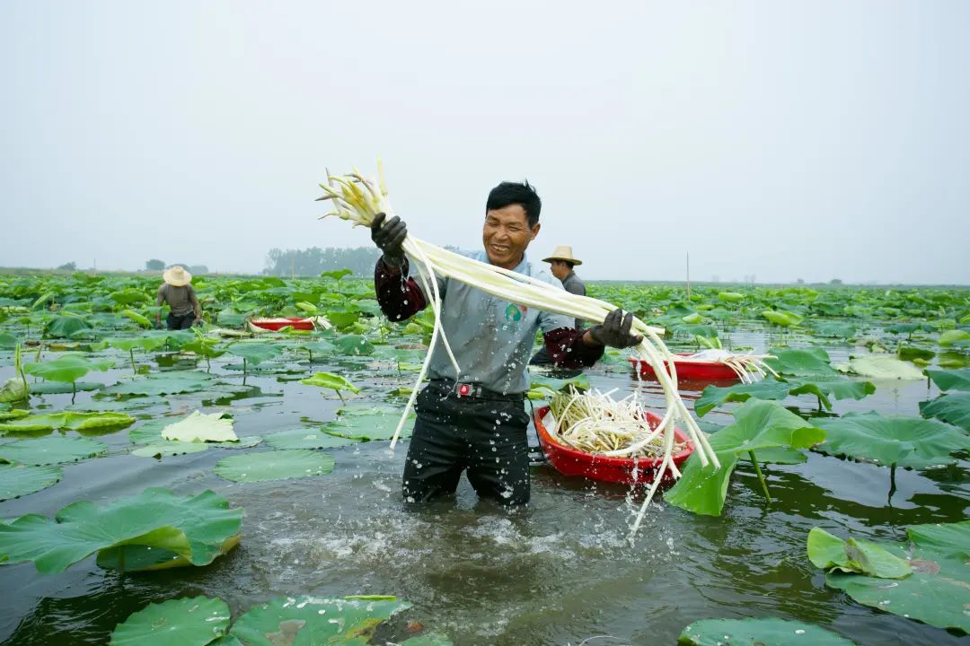 为了让外省市消费者吃上“日日鲜”的脆嫩藕带,“盒马村”藕带的采摘时间提前到凌晨4点,一出水就以最快速度清理打包,争分夺秒。