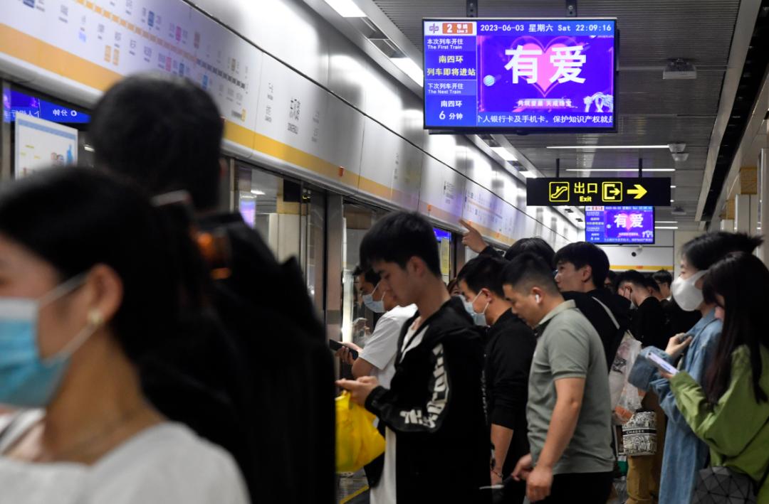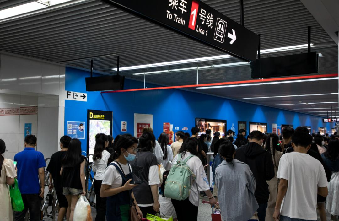 △晚9点的二七广场地铁站人头攒动。王梦瑶 摄