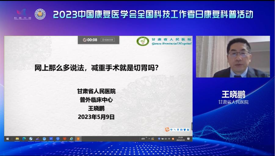 该论坛由减重与代谢康复专委会组织,主题为“减肥科普二三事”。 由中国康复医学会减重与代谢康复专委会主委张频教授担任论坛主席。