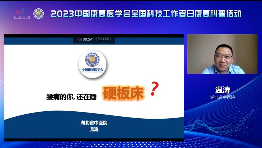为积极响应中国科协2023年全国科技工作者日活动号召,中国康复医学会于全国科技工作者日活动期间,组织学会所属分支机构以线上方式设立云上科普大讲堂,围绕全方位、全生命周期健康、疾病预防与康复等内容,开展康复科普知识宣讲。