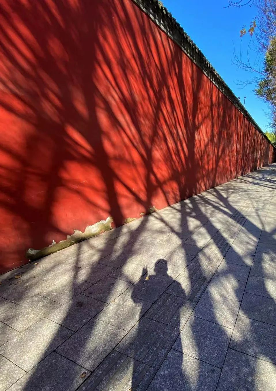 沈阳故宫东墙外,有一条林荫小路,背靠红墙也非常出片。寻宝: