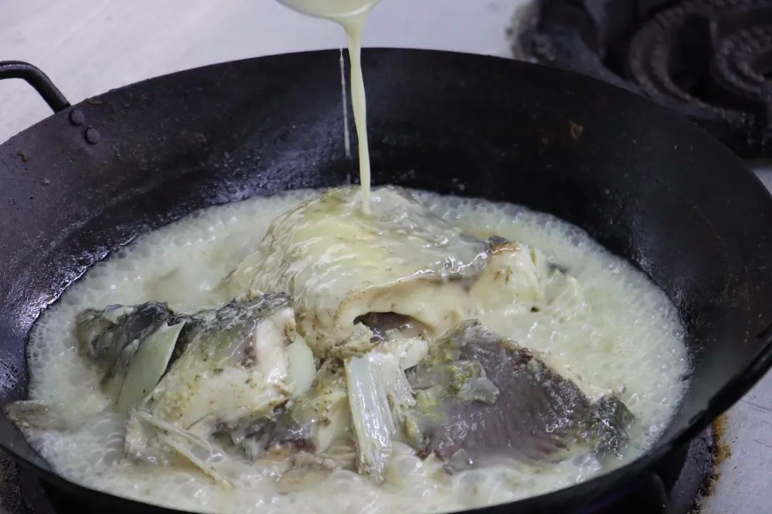 一锅飘着浓香的奶白色汤汁沸沸腾腾,