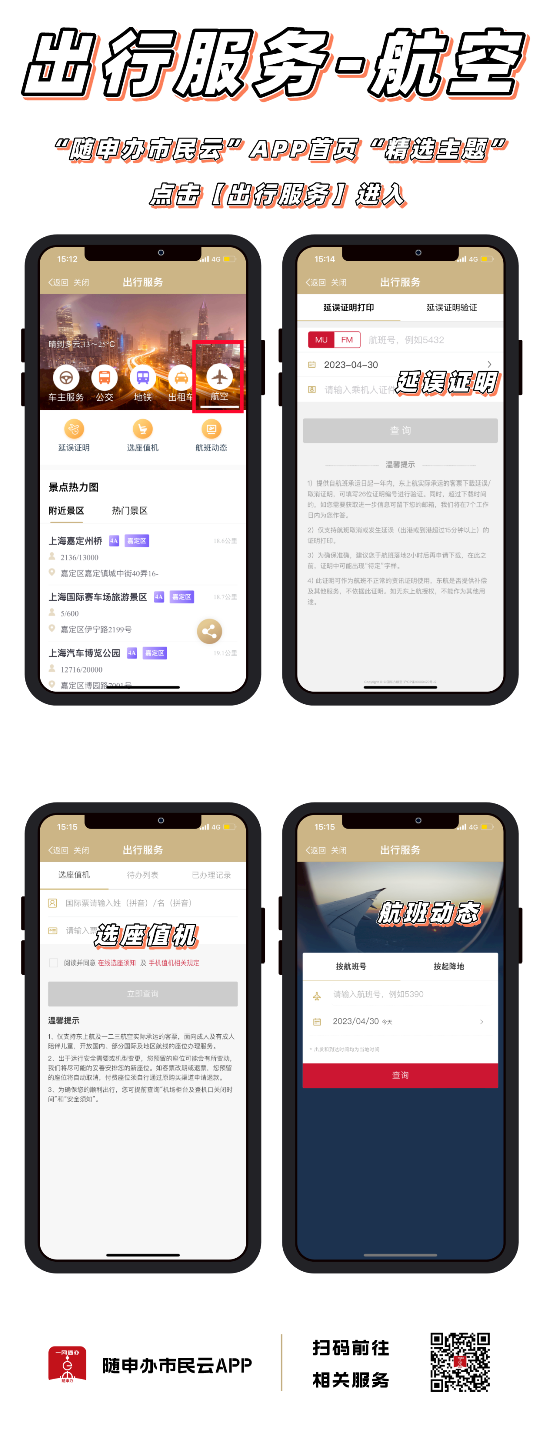 “随申办市民云”APP【出行服务】专区,上线了多个乘机便利服务