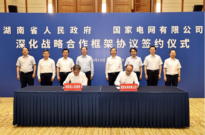 ▲ 6月10日,湖南省政府与国家电网签署深化战略合作框架协议。双方将在落实国家碳达峰碳中和目标、推进电网高质量发展、提升能源电力保障能力、加快能源绿色低碳转型等方面深化合作。(图片来源:湖南省人民政府网站)