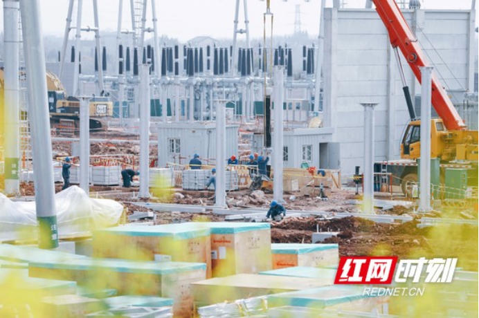 ▲ “宁电入湘”配套工程衡阳西500千伏变电站新建工程施工现场。