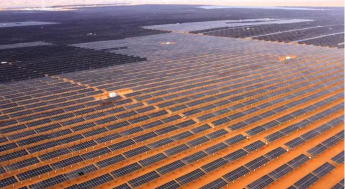 ▲ 宁夏沙漠中的光伏发电。(图片来源:新华社)