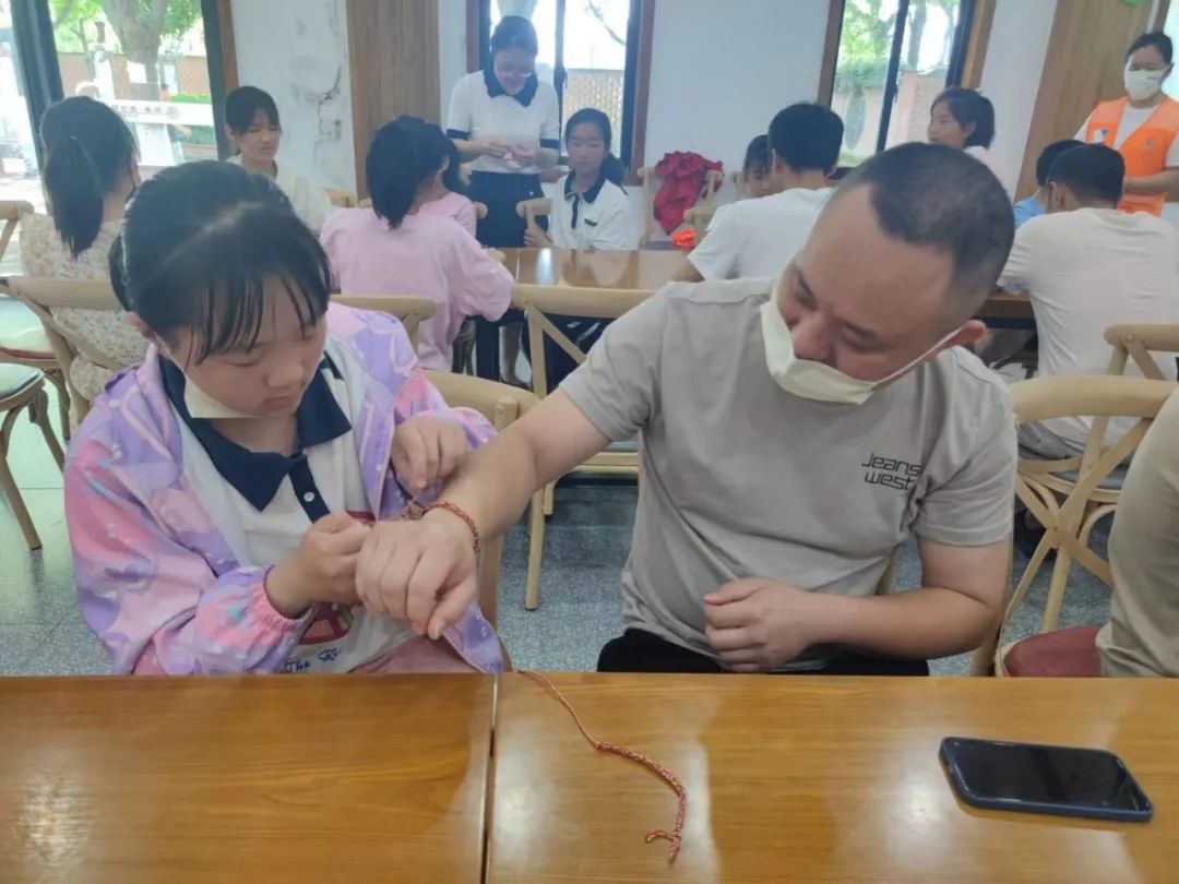 活动现场,学生与家长一起,通过DIY香囊,将美好祝愿送给即将踏上中考征程的孩子们。