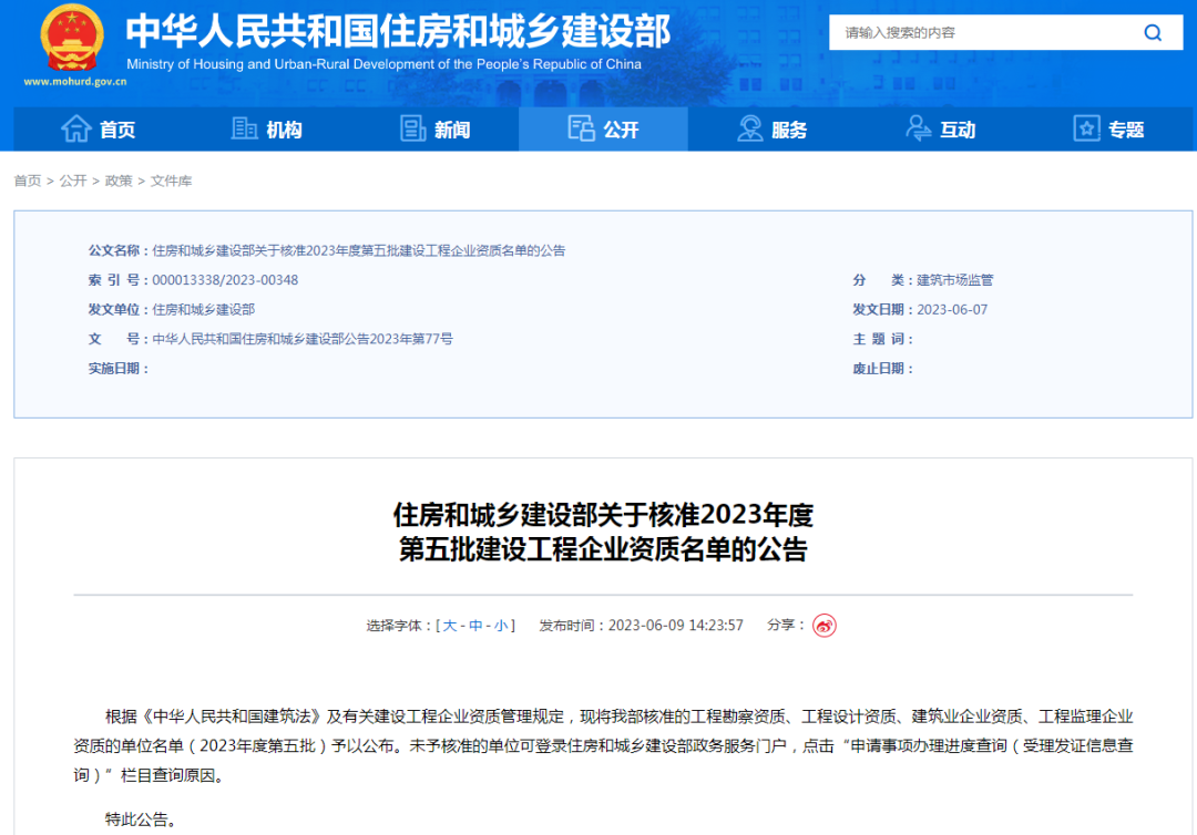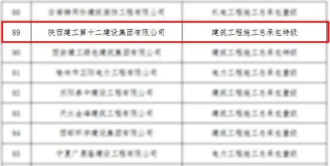 6月9日,住建部发布《关于核准2023年度第五批建设工程企业资质名单的公告》,根据公告内容,陕西建工第十二建设集团有限公司荣升为建筑工程施工总承包特级资质,以及建筑行业(建筑工程)工程设计甲级资质和建筑行业(人防工程)工程设计专业甲级资质。