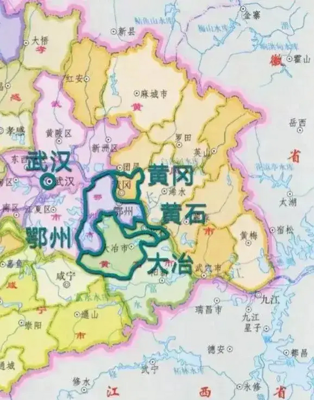 由武汉、黄石、鄂州、孝感、黄冈、咸宁、仙桃、天门、潜江九个城市组成的武汉都市圈,武汉、鄂州、黄石、黄冈是其核心区。