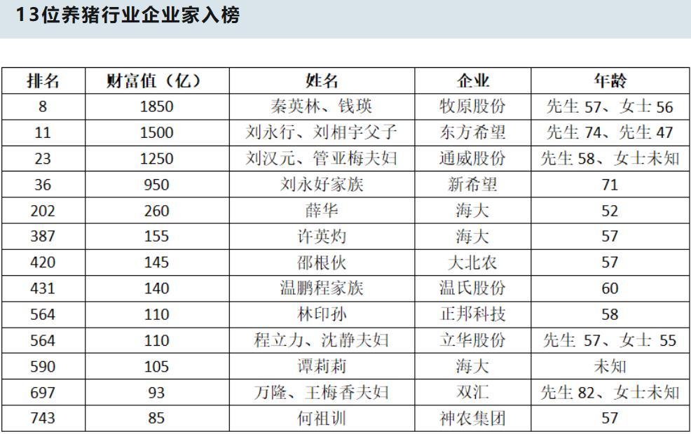 2022年胡润富豪榜上榜的“猪企“不过,一边是富豪上榜风光无限。