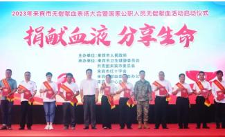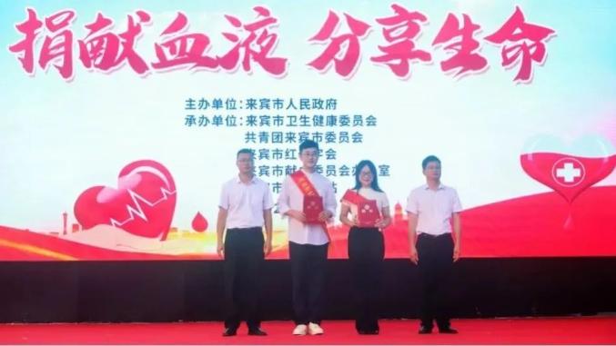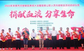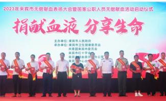 6月12日上午,以“捐献血液 分享生命”为主题的2023年来宾市无偿献血表扬大会暨国家公职人员无偿献血活动启动仪式,在市城区政和步行街举行,39名优秀献血志愿者荣获表扬,以此感谢献血者的无偿献血行为,弘扬救死扶伤的人道主义精神。