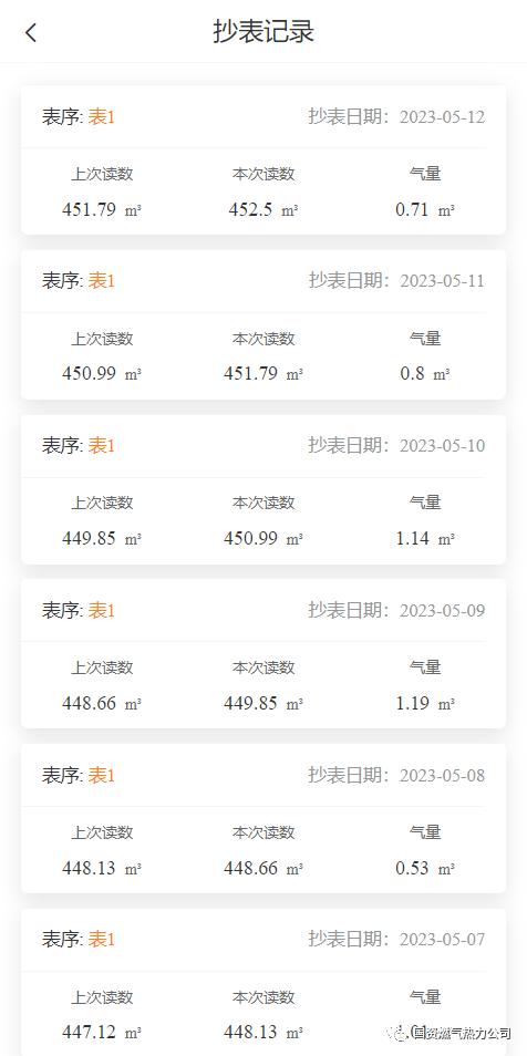 02绑定成功后可以在【我要交费】中进行气费充值,在【个人中心】查询家中燃气费余额,在【抄表记录】中可以详细的查询每日用气情况。