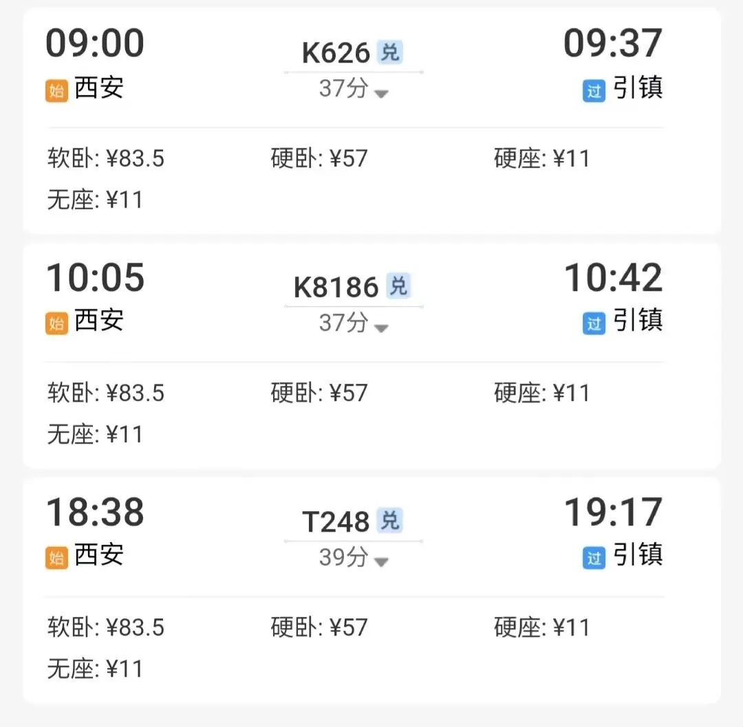 例如,从西安站出发,到宝鸡站下车,换乘11:20的8359次列车,即可到达。↓↓↓