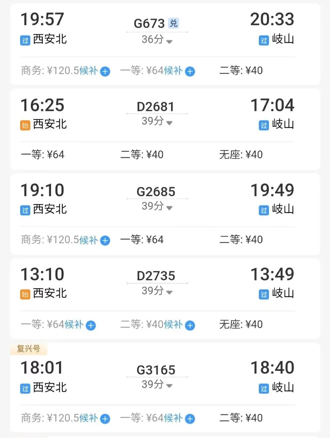 例如,从西安北出发,乘坐到岐山的动车,最快36分钟到达。↓↓↓