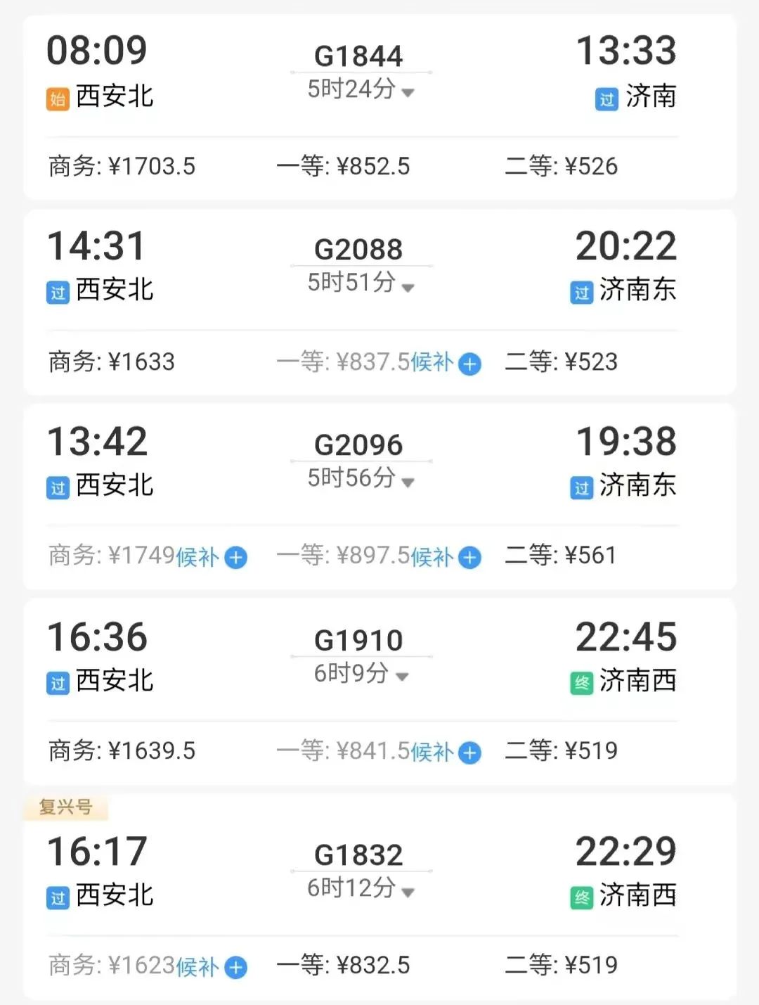 例如,从西安北出发,乘坐到济南的动车,最快5小时24分到达。↓↓↓