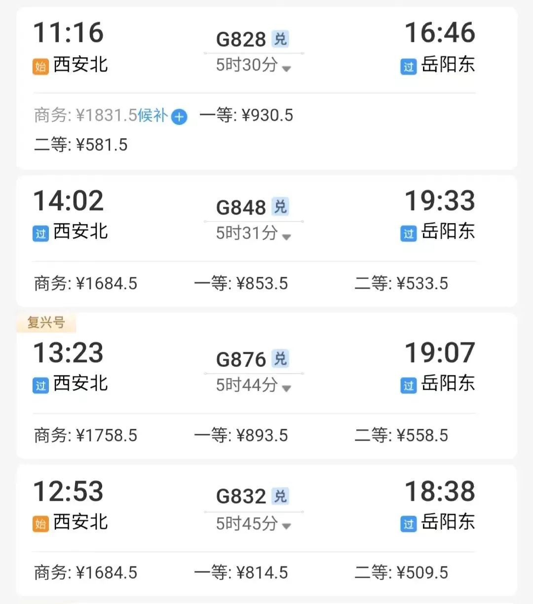 例如,从西安北出发,乘坐到岳阳东的动车,最快5小时30分到达。↓↓↓
