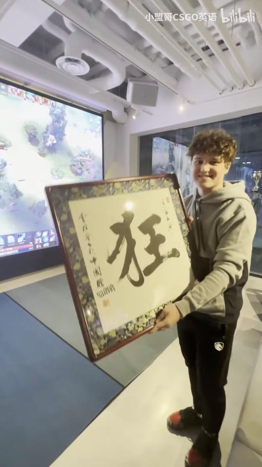 继给ZywOo送出“厚德载物”的礼物之后,小萌哥等人又为TeamLiquid战队的YEKINDAR送去了礼物,这位拉脱维亚籍CSGO选手的礼物是狂字的书法贴。“狂哥”这个中文称呼来源于YEKINDAR不讲道理的游戏风格:以inferno地图的B区“香蕉道”为例,你三个人防守是吧,我YEKINDAR拉出去全杀了!狂哥这个人如果打出手感的话,那可是太恐怖了,前段时间的Blast 巴黎Major上,YEKINDAR就曾凭借一己之力打崩NaVi。