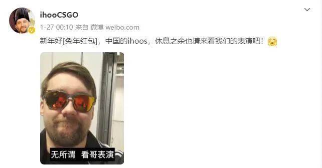 我们中国玩家在CS社区中一直都很活跃,国外很多职业哥对此也有了解,比如G2战队的指挥HooXi专门注册了新浪微博来与中国玩家互动,在中国特色节日春节时还送来了新年祝福:“新年好,中国的ihoos,休息之余也请来看我们的表演吧!”