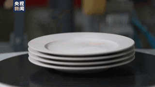 总台记者 殷一元:这是一台等静压设备,它最大的特点就是快,短短几秒内就可以做出一件完整的瓷坯。不同于我们理解的在制作之前需要将瓷泥放入到模具里进行滚压才能成型,这台设备通过300公斤的压力就可以将这些干粉直接压制成型。由于这些干粉的吸水率比较低,所以就直接省去了烘干的环节,缩短了三分之一的制作流程。
