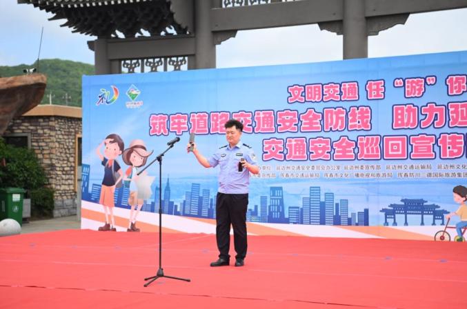 当日上午,由吉林省公安厅交通管理局、延边州公安局交警支队和珲春市公安局交警大队联合开展的“美丽乡村行”暨礼仪延边“文明交通、任‘游’你行”交通安全巡回宣讲活动在珲春防川景区“东方第一村”举行。