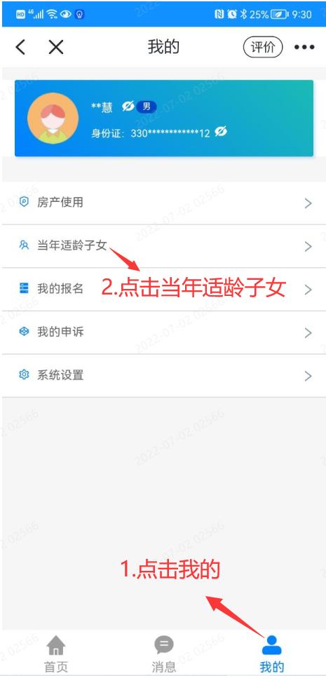 ⑵进入“当年适龄子女”页面,点击“一键报名”